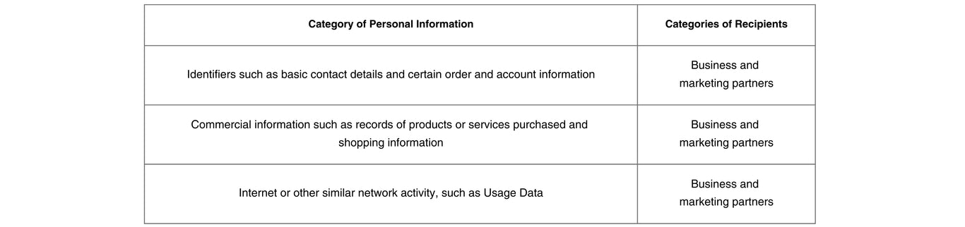 - With business and marketing partners, including Shopify, to provide services and advertise to you. For example, we use Shopify to support personalized advertising with third-party services. Our business and marketing partners will use your information in accordance with their own privacy notices.